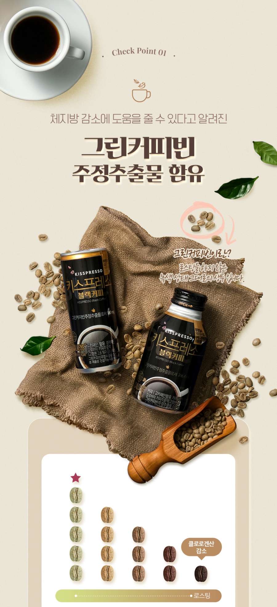 体脂肪減少に役立つと知られているグリーンコーヒービーン酒精エキスが180mg含まれている製品です新製品として今回発売されただけに、カロバイサイトで1束(24缶)を12,900ウォン事前予約単独特価で購入できますグリーンコーヒービン効能グリーンコーヒービンにはポリフェノールの一種であるクロロゲン酸が含まれているが、これは強力な抗酸化作用および新陳代謝率増進と炭水化物の吸収を減らし血糖数値を減らして体重減量を促進させるのに役立つ。