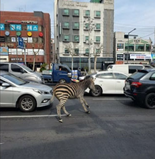 서울 어린이 대공원에서 얼룩말 탈출경찰·불로 정복한 후
