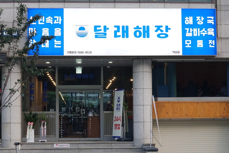 요즘 날씨도 더워지고 뜨끈한게 먹고싶어지는데, 오히려 출근해서 촬영하는 기분! 해장국을 마시고 싶은 배고파. 땀을 뻘뻘 흘리며 점심시간을 이용해 이산역과 강남역 사이에 위치한 달라하이장이 3호점에 왔는데 시원한 파란색 간판이 눈길을 끌었다.