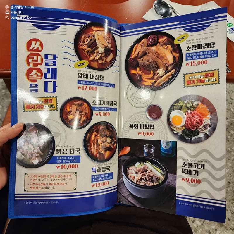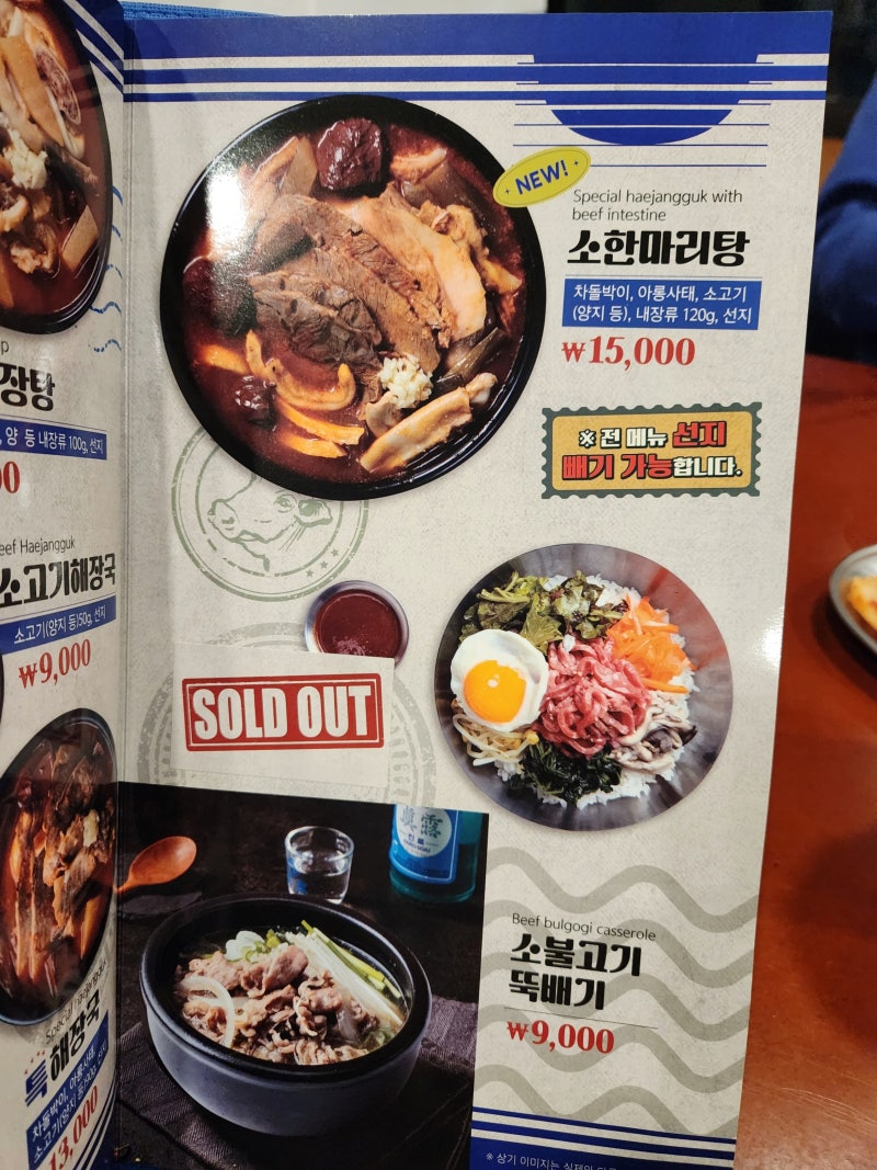 평일 점심시간에는 고기가 1만원! 먹을 수 있기 때문에 저렴합니다. 곧바로 양지머리 해장국을 주문했다. 그나저나, 전체 메뉴에서 종이를 떼면 원하는대로 주문할 수 있습니다!
