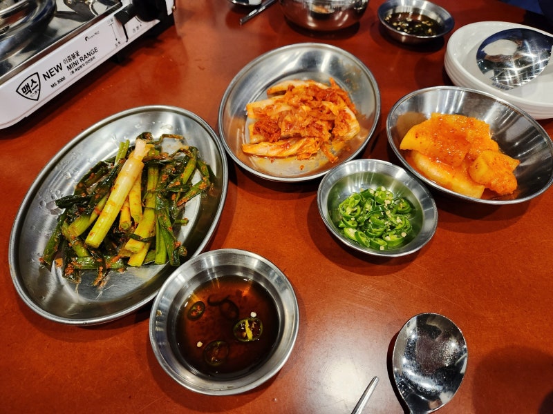 먼저 밑반찬부터 시작하면 제일 먼저 나오는 아삭아삭한 김치! 김치가 뜨거워진 해선장을 구수하게 식혀줄 것 같습니다.