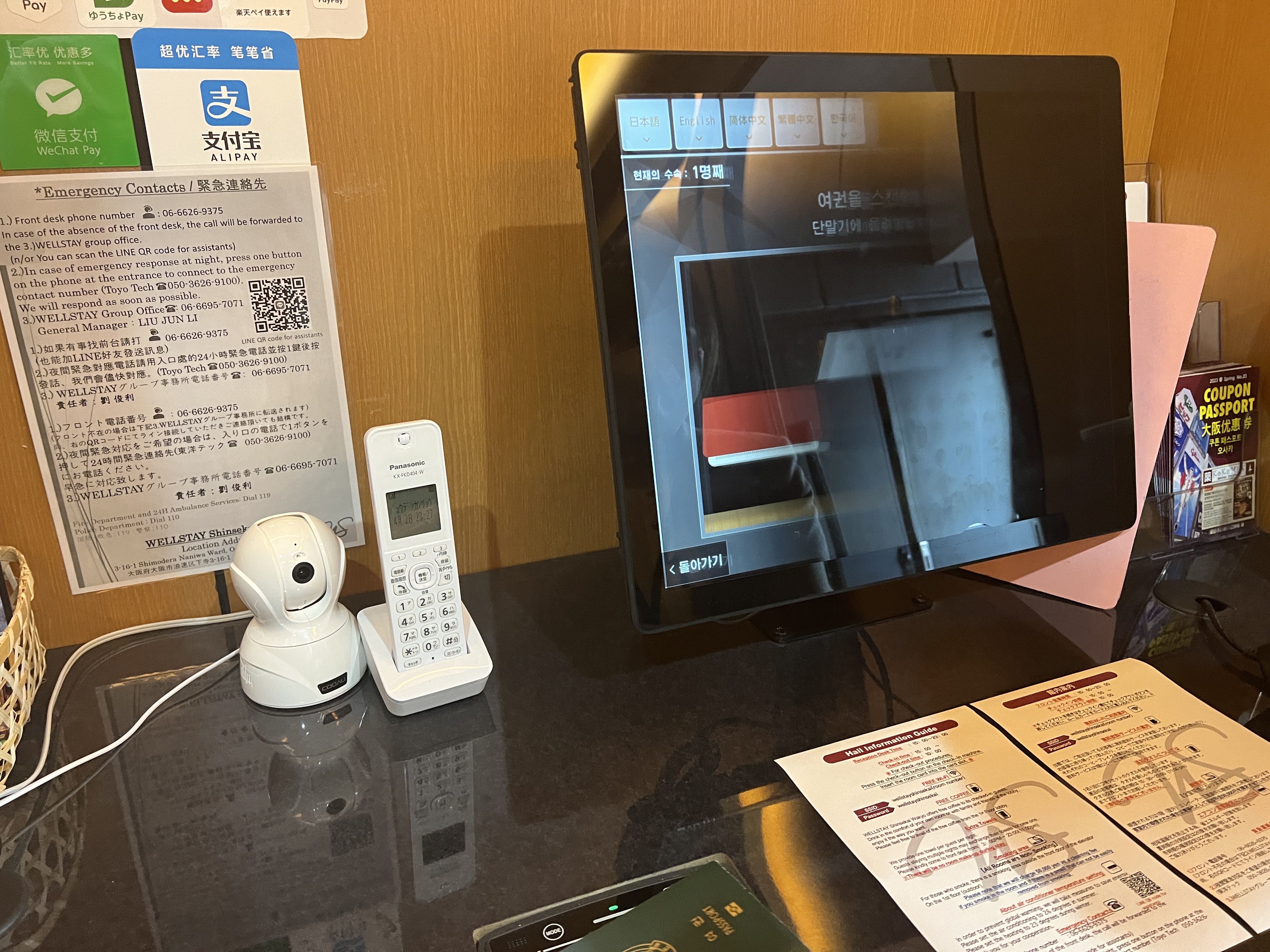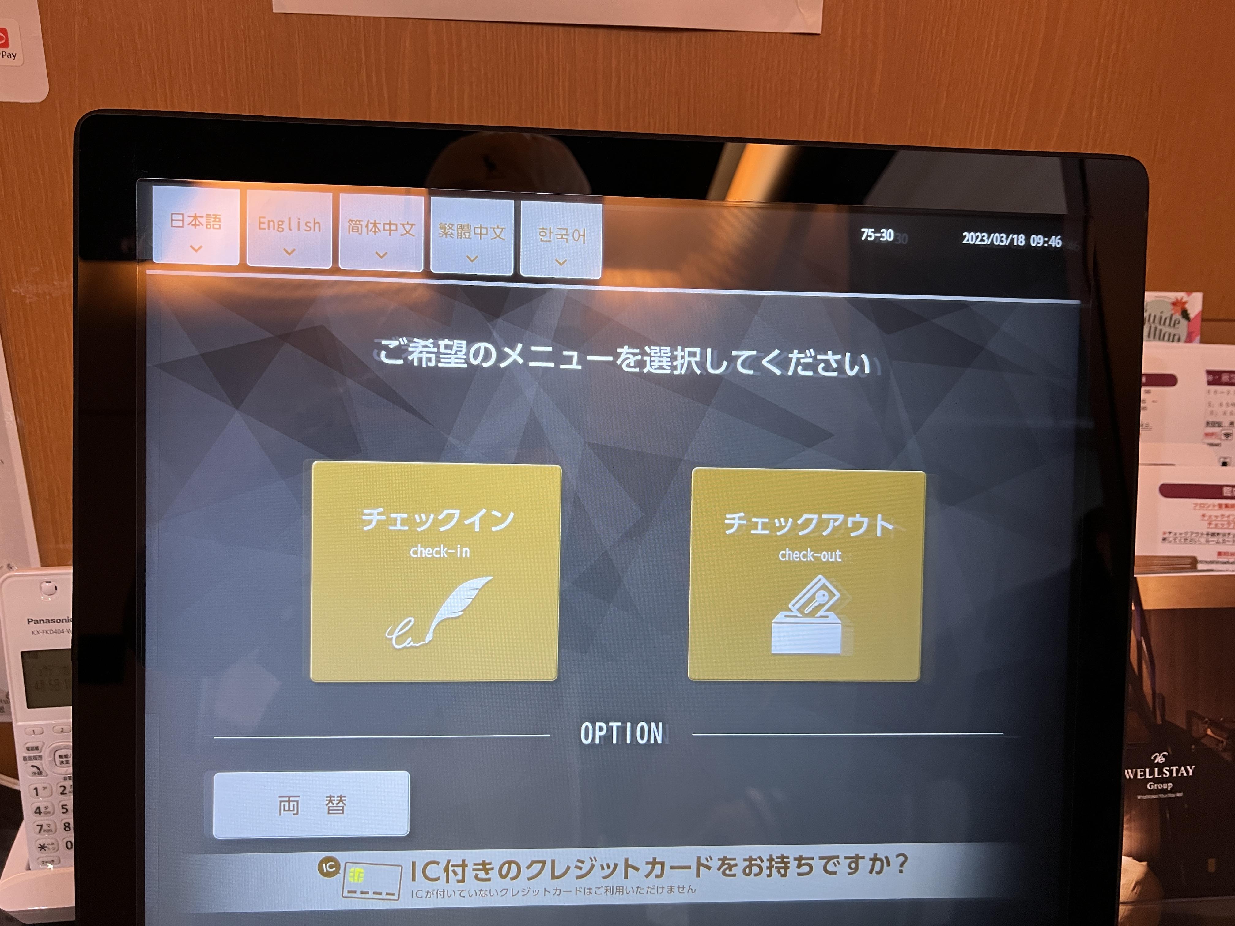 무인 체크인기를 이용해 오후 3시에 체크인을 했습니다. 직원분이 쉽게 도와주셨고 1~2개의 키를 선택해서 발급하시면 됩니다. 체크인할 때 일회용 칫솔과 치약을 주셨어요.