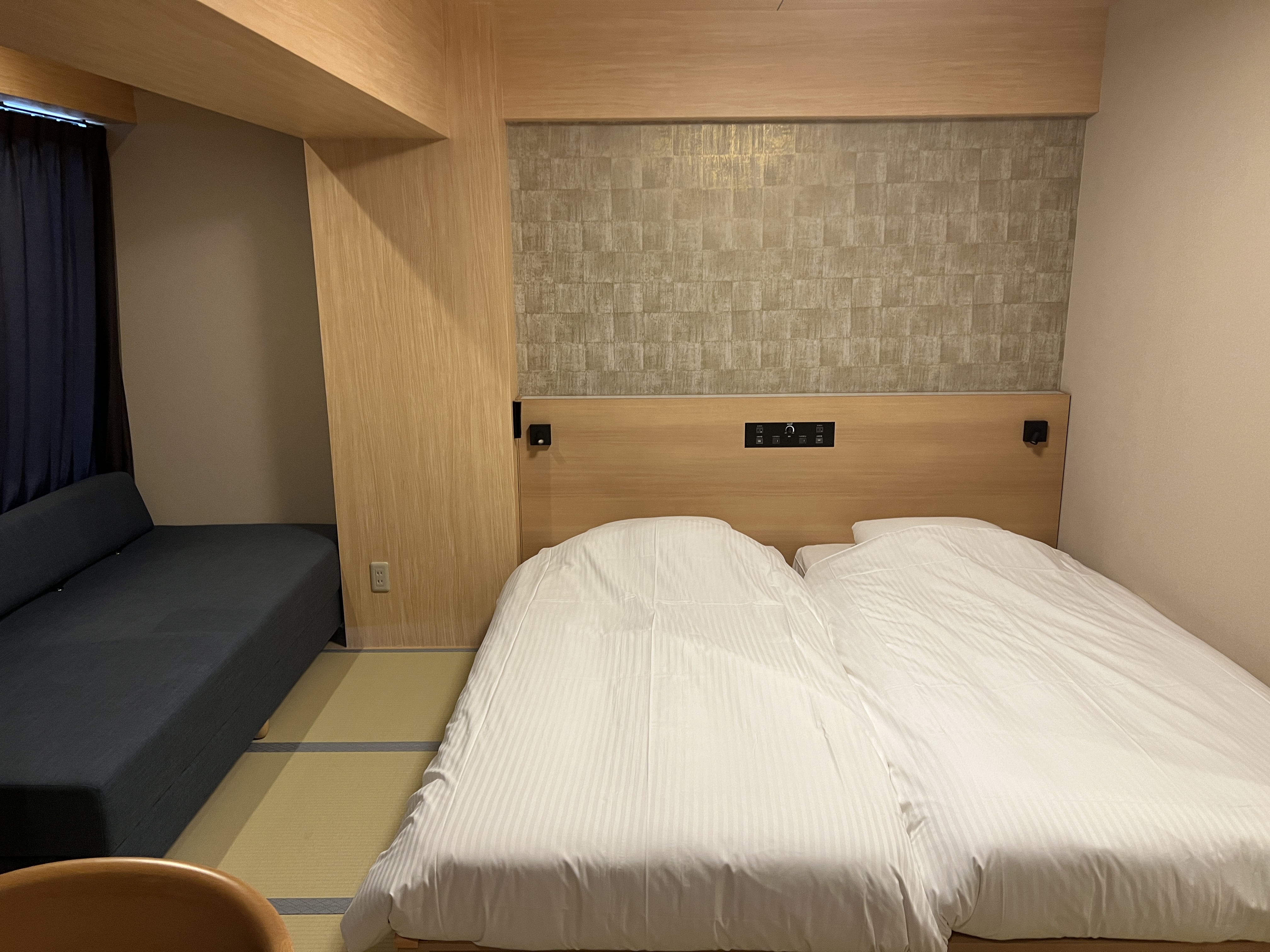 보통 오사카 시내 숙소 방 크기가 15~16㎡ 정도인데 웰스테이 신세카이 와쿄 방 크기가 25㎡나 돼서 좋았어요.
