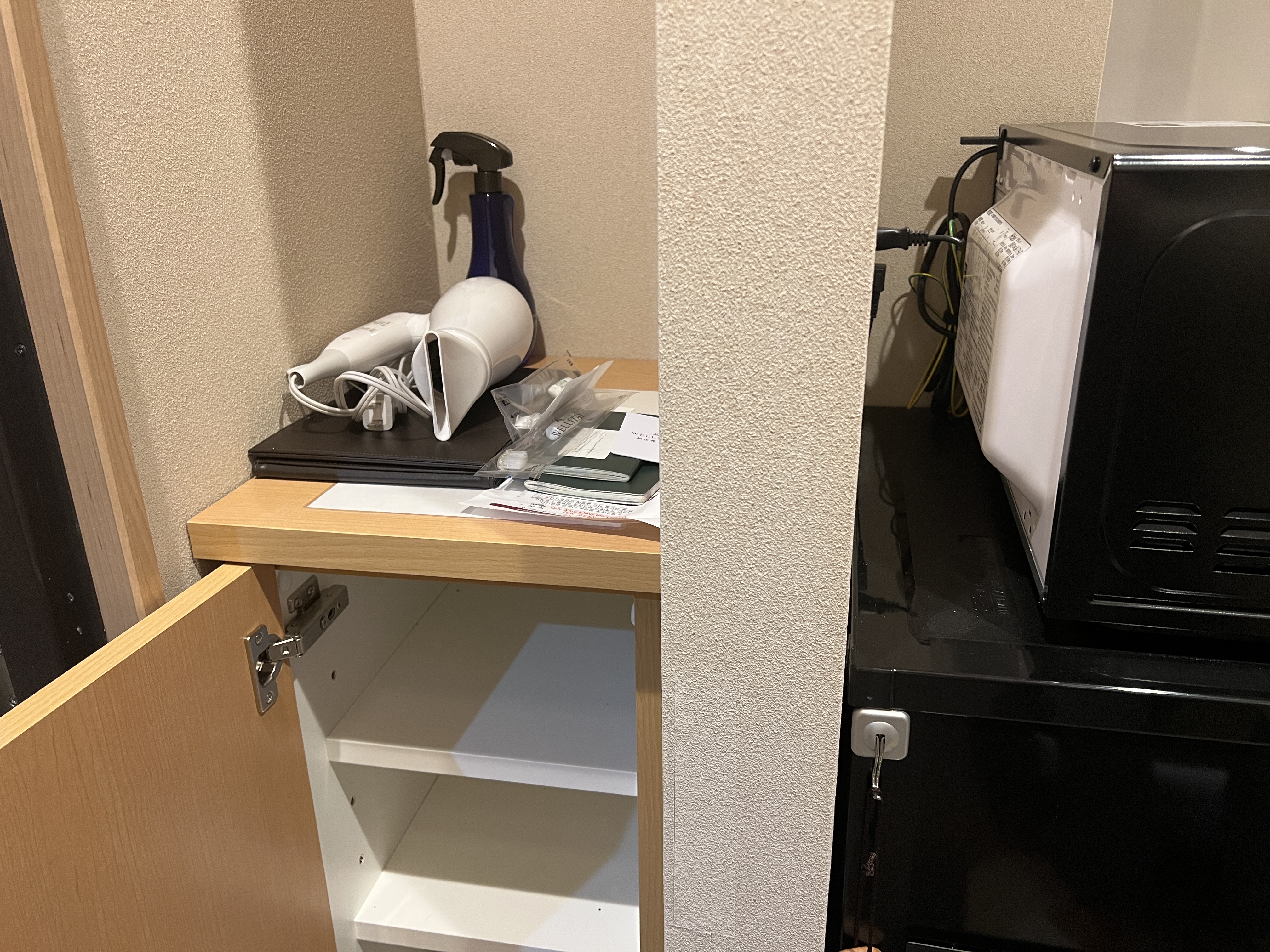 요리를 위한 하이라이트와 다양한 그릇이 제공되었습니다. 3일차는 오사카 음식이 좀 심심할 때 신라면을 사서 끓여먹었습니다. 냉장고가 일반 호텔보다 크고 냉동고도 잘 갖춰져 있어서 아이스크림을 사서 먹을 수 있었습니다. 세탁기를 사용하지 않았지만 더 오래 머무르면 빨래를 할 수 있습니다. 전자레인지가 있어서 기본적인 냉동식품을 뒤집어서 먹을 수 있었습니다.