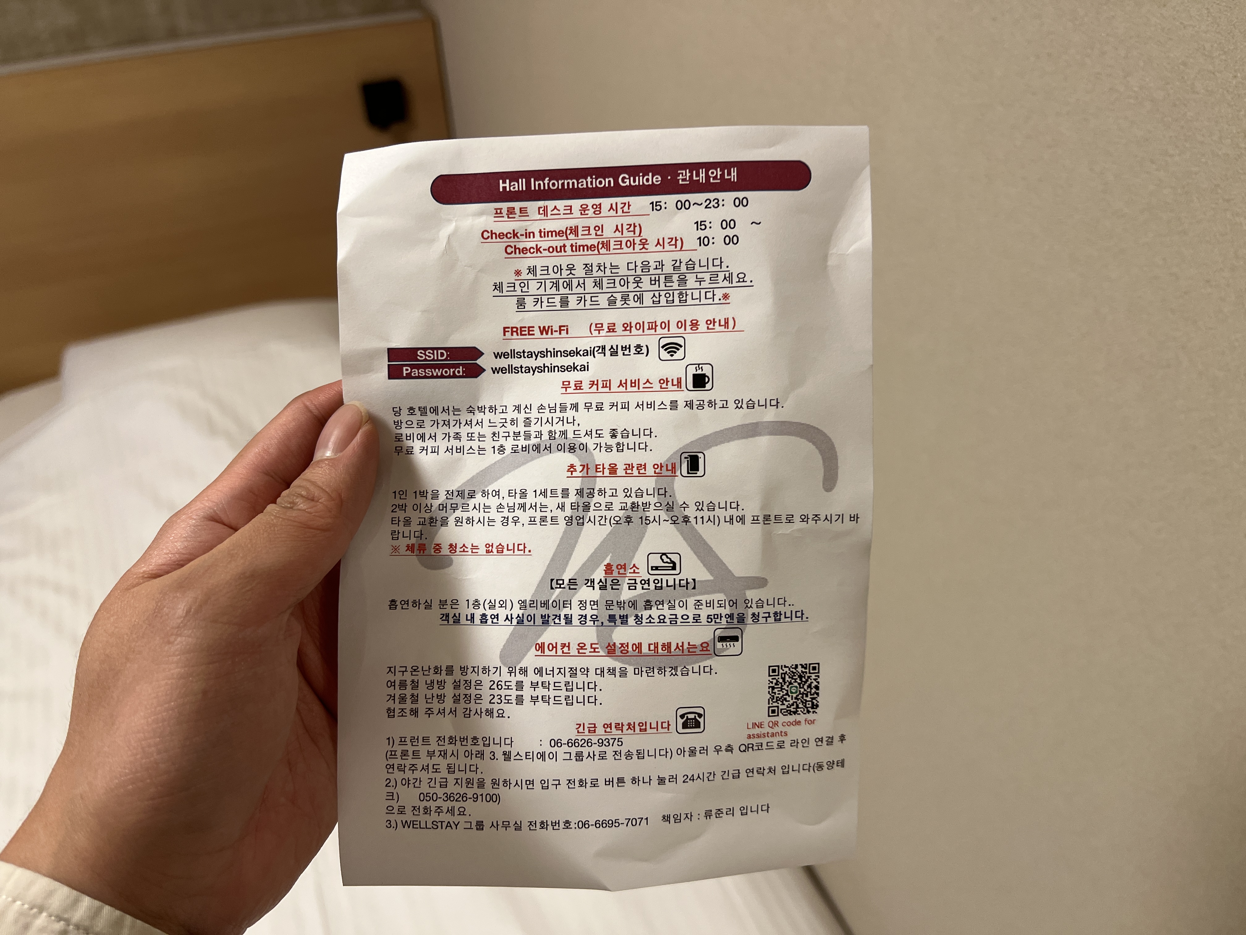 처음에는 전화로 06-6695-7071로 전화를 걸어 신청했는데 나중에 인사과를 두드려 새 수건을 달라고 했다.