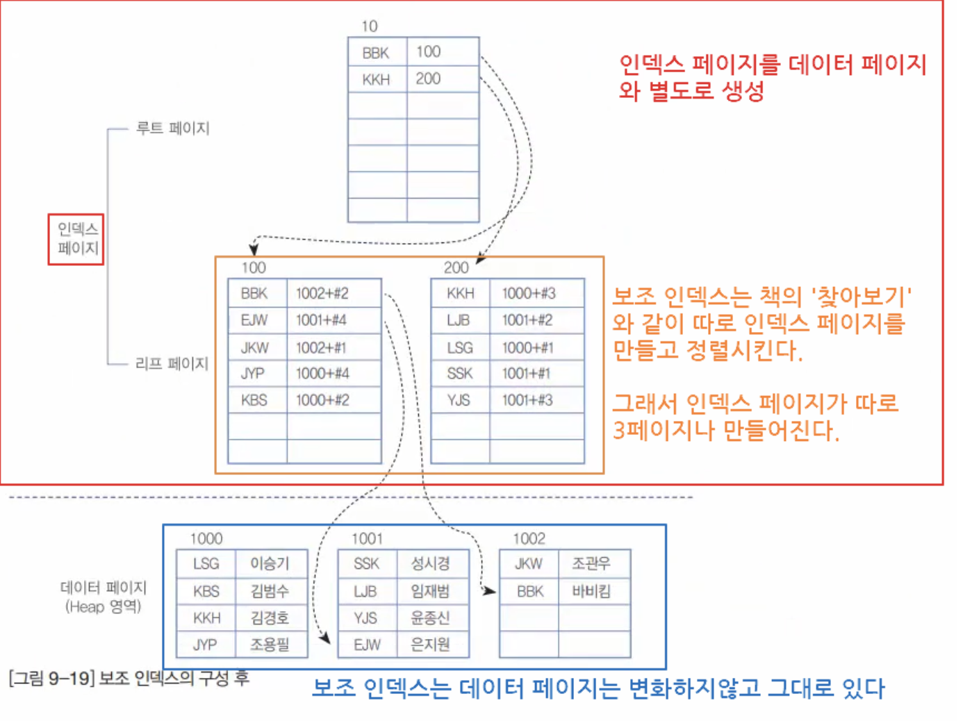 보조 인덱스를 생성할 때 별도의 페이지 에 색인을 구성합니다(제거)