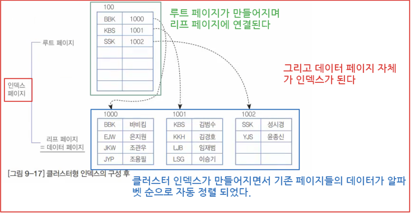>> 인덱스 생성 시 모든 데이터 페이지가 재정렬됩니다.