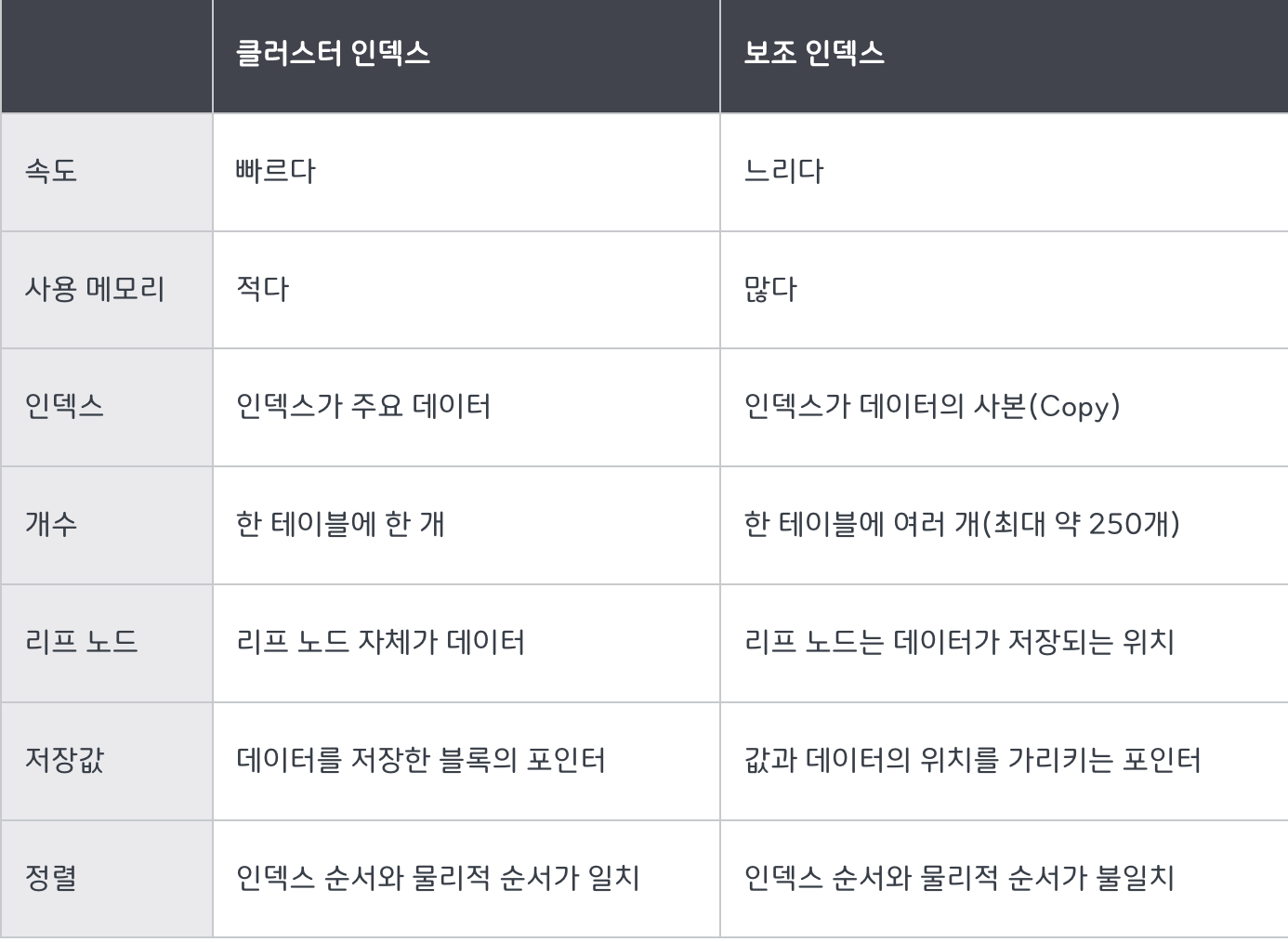 클러스터 인덱스는 처음부터 정렬됩니다. 영어 사전 나는 같은 느낌