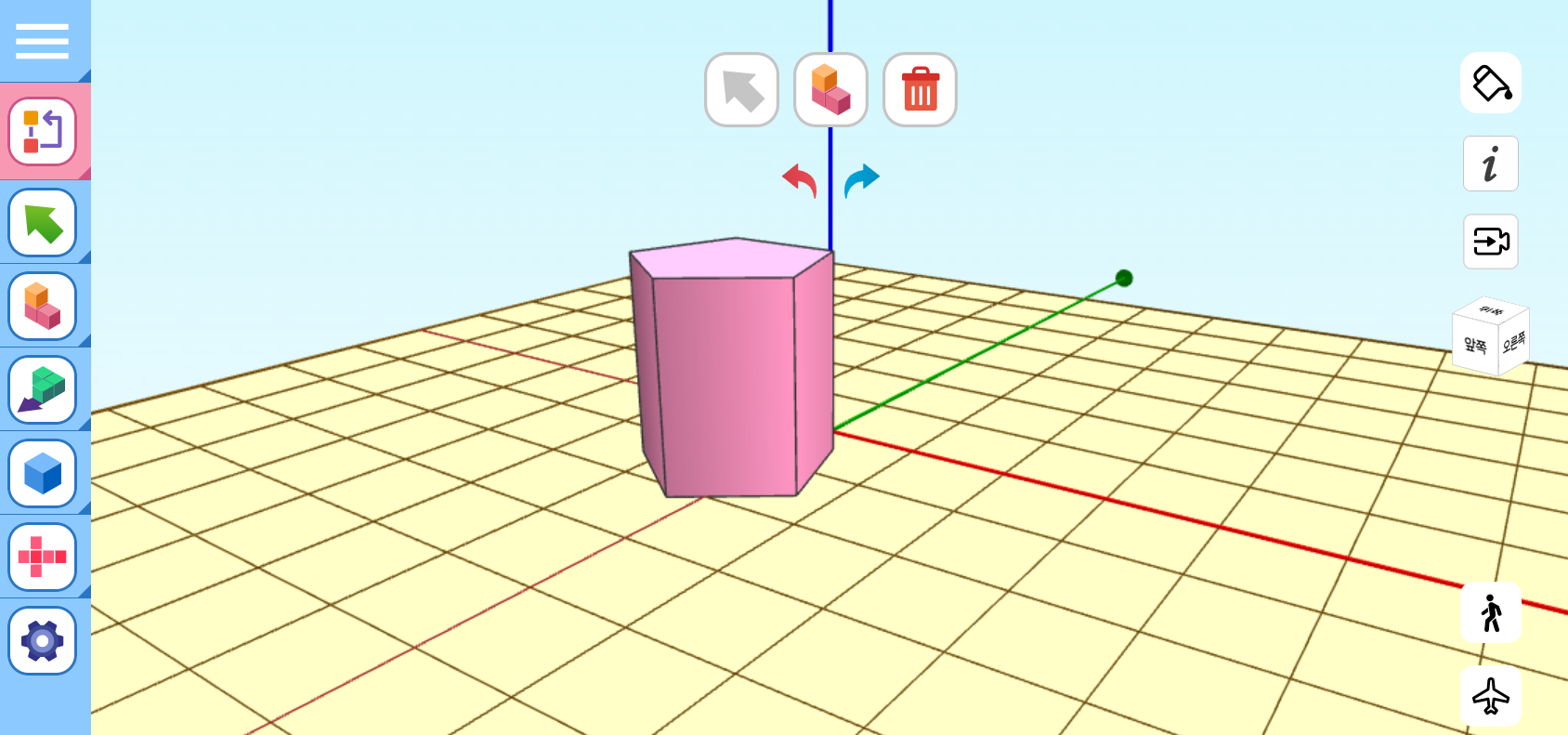 (선택) 도구 클릭 후 생성된 입체도형을 선택하면 이동모드, 회전모드, 크기모드 등을 변경할 수 있습니다.