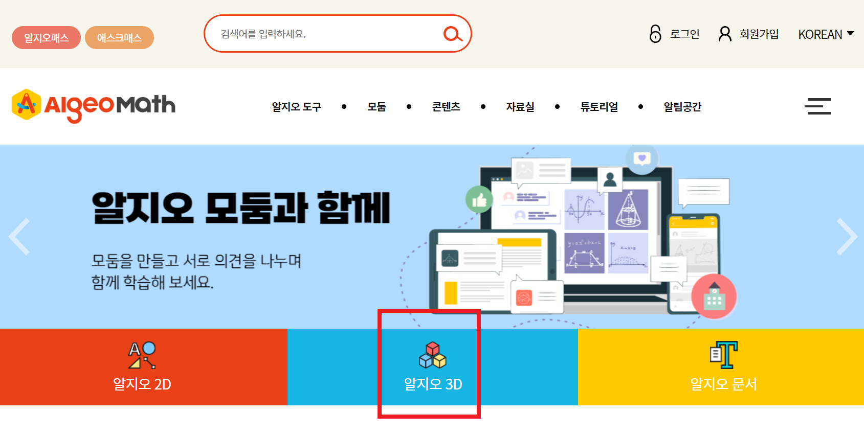 다음은 리지오매스 홈페이지(https://www.algeomath.kr/main.do) 보지마. RGI 3D를 선택합니다.